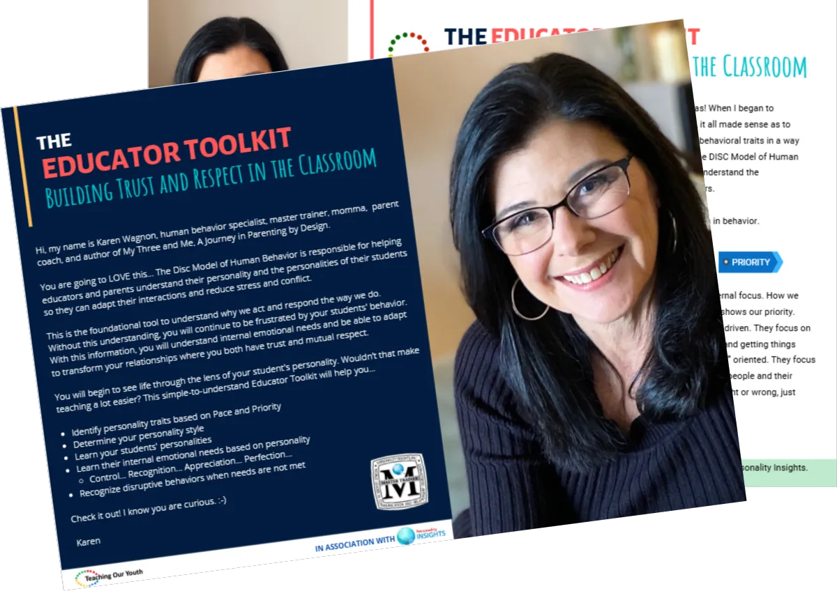 I learned so much about my own personality features as well as my daughters. This program will work for any parent and child combination. Parenting By Design, with the coaching of Karen Wagnon, will get you and your child to a better,